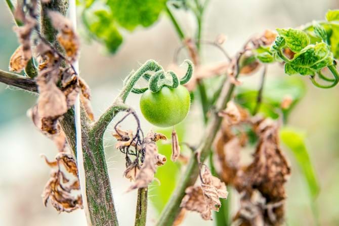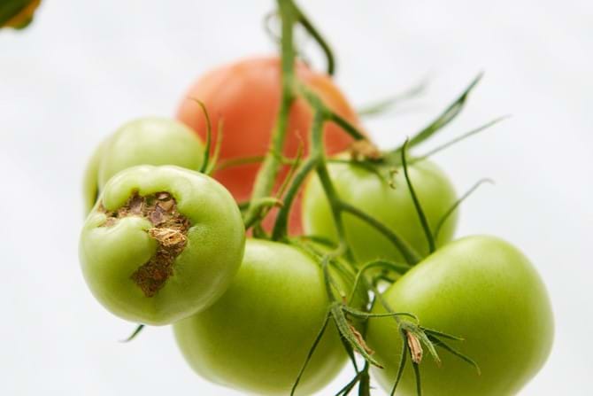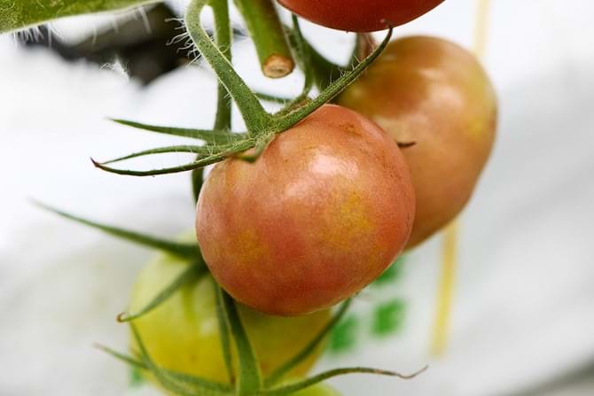 - Gelbe oder orangefarbene Flecken auf den Tomaten