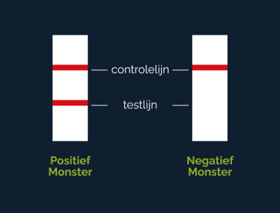 Let op: als er te veel plantmateriaal is gebruikt, kan de testlijn groen kleuren.