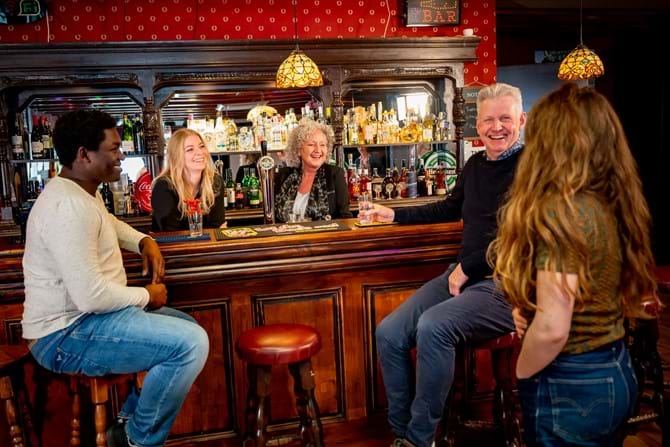 - Op vrijdagmiddag een gezellige borrel in onze eigen kroeg.